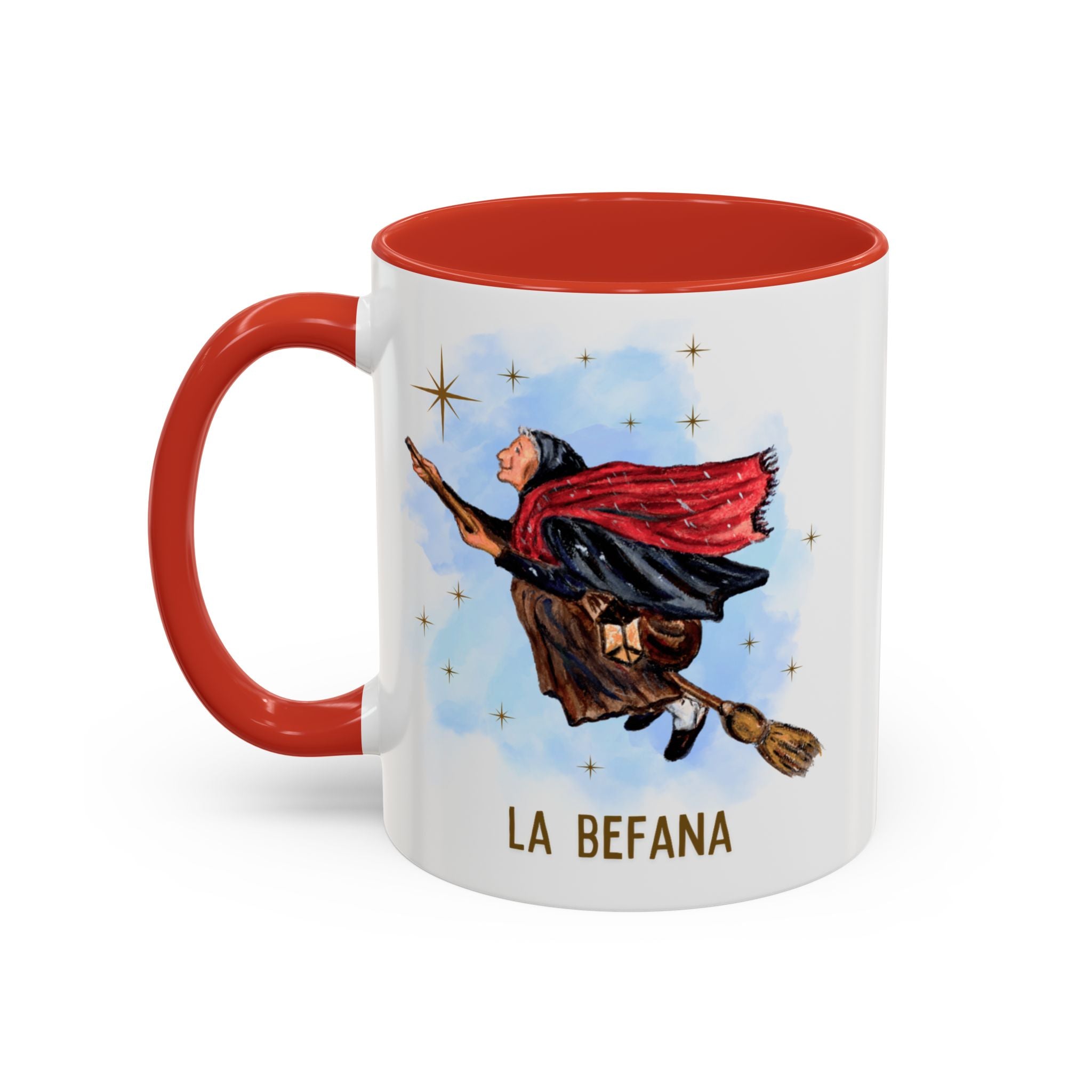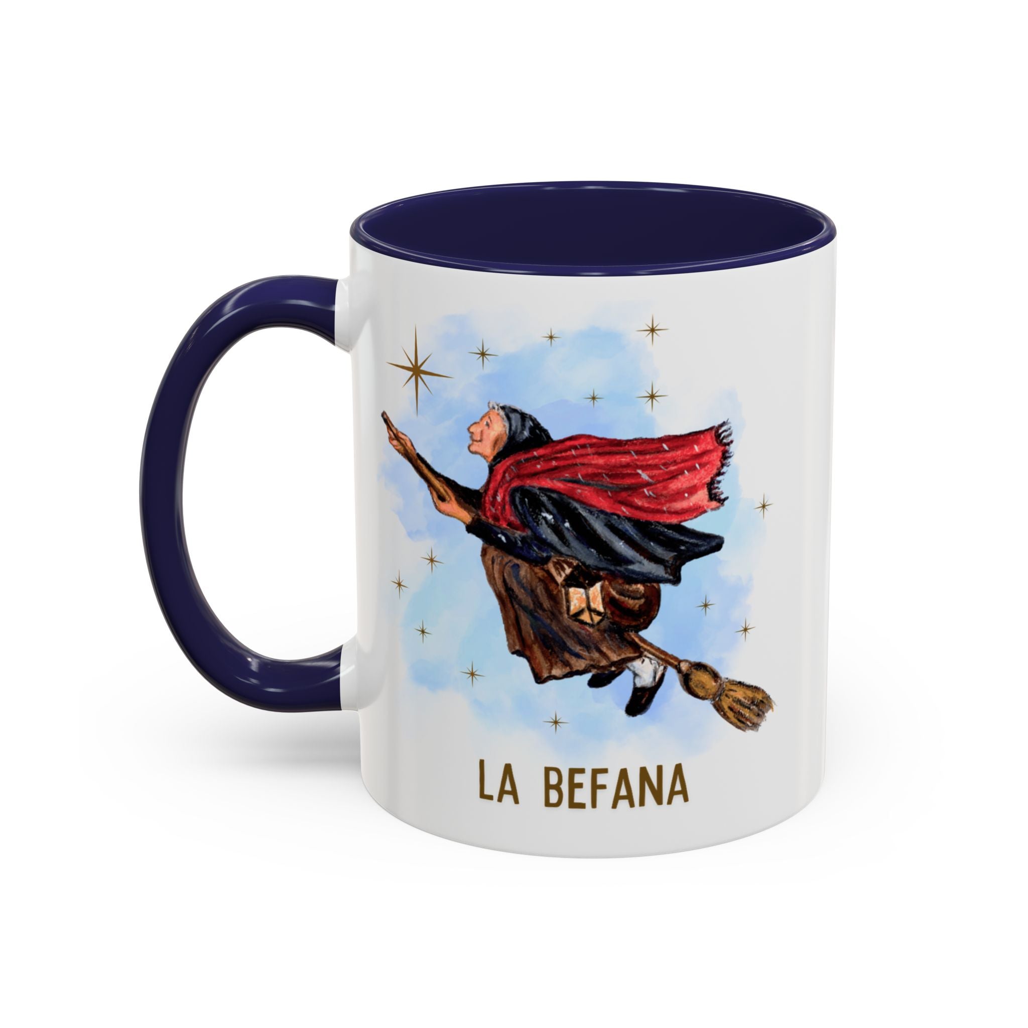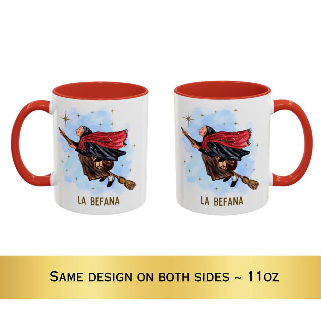 Our Befana mug features an original illustration from our book, The Night of La Befana, an