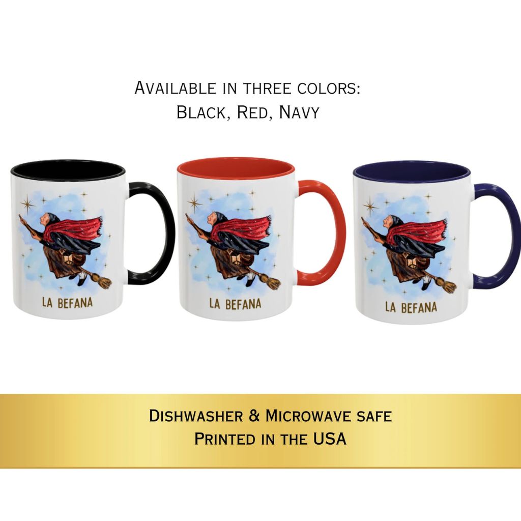 Our Befana mug features an original illustration from our book, The Night of La Befana, an Italian Legend. This book was a special project that my sister, Maria Centofanti Pritchard, and I created together. Maria retold this ancient Italian legend exactly as our Italian grandmother shared it with us. The illustrations, which I, Isabella Centofanti, created, drew inspiration from our father's village in Italy and from our beloved grandmother, who inspired the character of the old woman in the story.