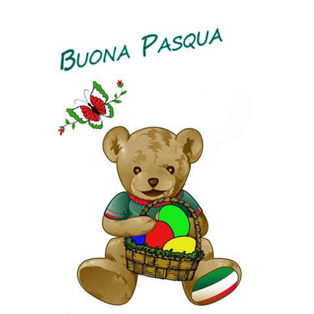 Giovanni says, "Buona Pasqua" and brings along a basket of eggs and his signature "tre colore" farfalla (butterfly).