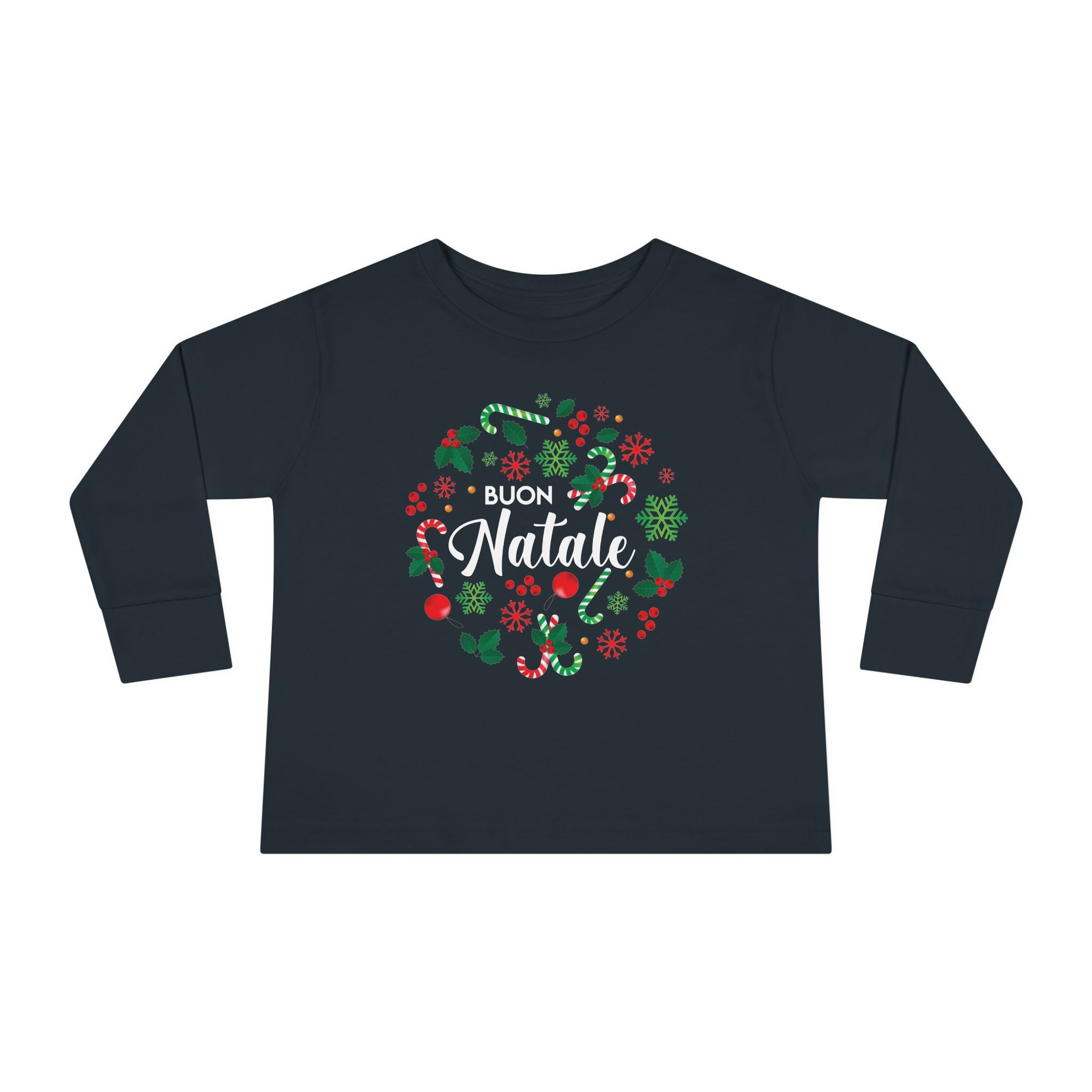 Buon Natale Wreath -Toddler Long Sleeve Tee-Shirt
