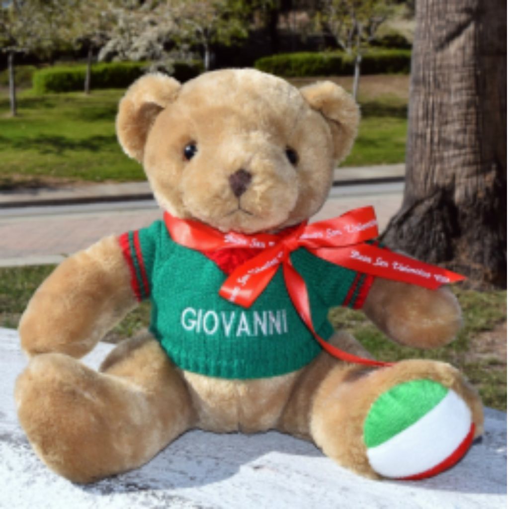 Important Note: The name on the shirt cannot be changed. Giovanni is the bear's name. The first words Giovanni says is "Ciao, mi chiamo Giovanni". (Hello, my name is Giovanni)
